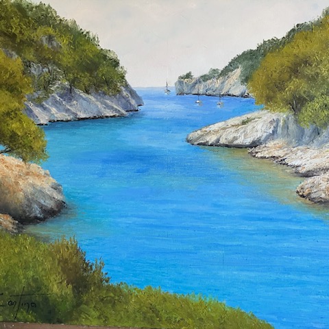 L’artiste est captivée par la peinture figurative d’expression provençale. Elle choisit de représenter les paysages qui ont toujours accompagné sa vie. Elle choisit de travailler l’huile au couteau.